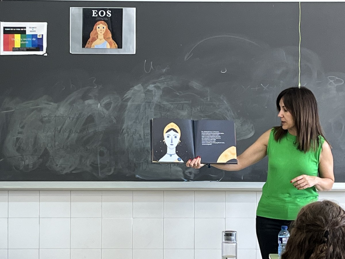 Durante los días uno, dos y tres de junio,  nuestro alumnado de 1ºESO ha podido seguir indagando en la temática mitológica de la mano de Eos,  un relato escrito por Inma Fuentes quien explicó tanto el origen del mito, como el contexto histórico en el que se desarrolló y algunas aportaciones personales vinculadas con la localidad que incluyó en la obra. El alumnado se mostró muy participativo e interactuó con la autora y gracias a la colaboración de la Concejalía de Educación del Excelentísimo Ayuntamiento de Albatera todos fueron obsequiados con un ejemplar.