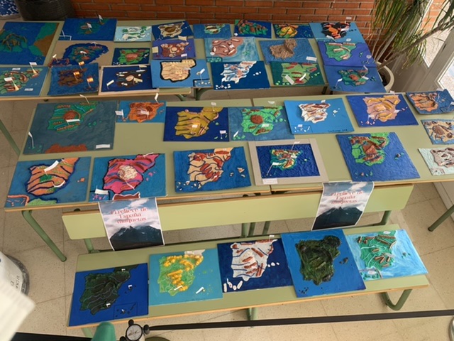 Los alumnos y alumnas de 1º de ESO están ayudándose de la plastilina y su habilidad para conocer el relieve y los ríos de España. Aquí tenemos una amplia muestra de los mapas físicos creados por ellos.