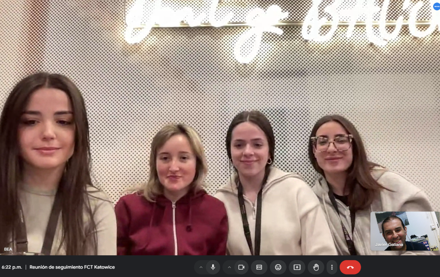 Primera conexión online con el grupo de cuatro alumnas, Ana Gomis, Marta Lizán, Raquel Mazón y Beatriz Pacheco, que están realizando sus prácticas formativas en la ciudad de Katowice (Polonia). Muy emocionante el hablar con ellas y ponernos al día de como ha sido su primera semana en la ciudad y en la Universidad Slaski de la Silesia. Son pioneras en este campo de acción Erasmus en nuestra institución y sin duda serán de inspiración para los próximos participantes en el curso 2025-2026