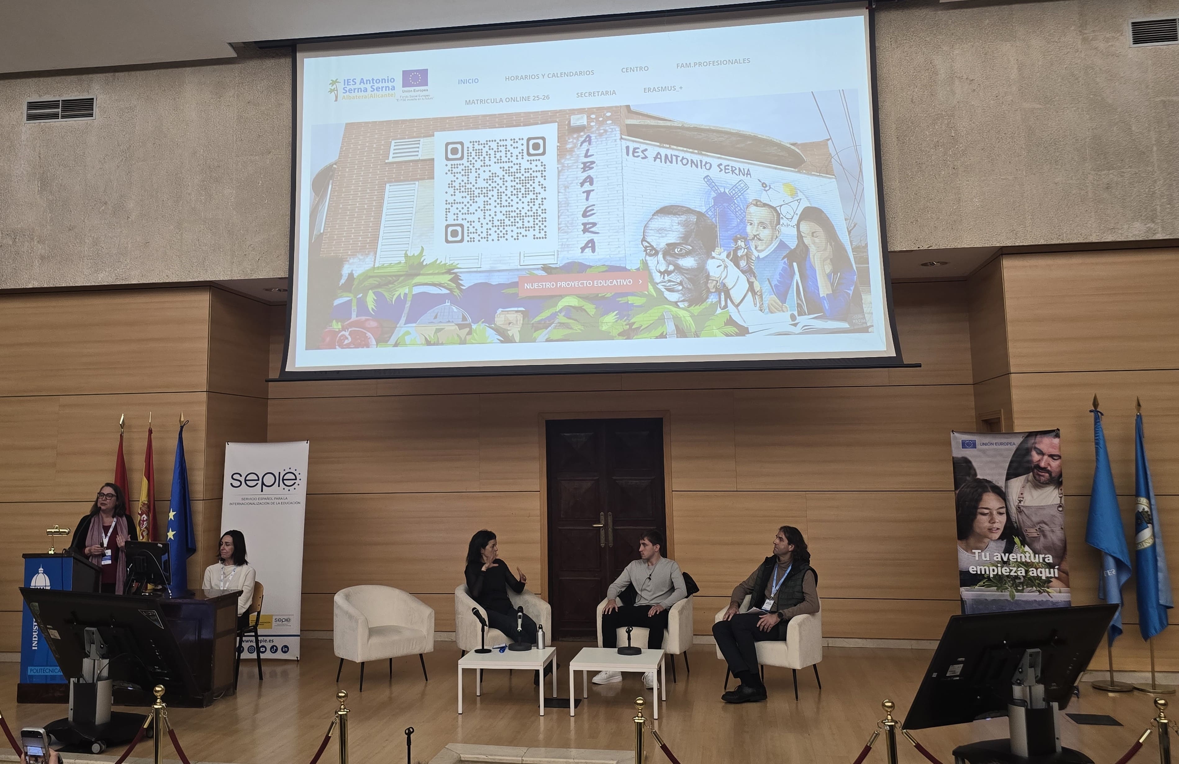 En el marco de la jornada, el IES Antonio Serna tuvo una participación destacada a través de Javier Galiana, coordinador Erasmus+ del centro, quien intervino en la mesa redonda “Impulsando la inclusión y la diversidad en proyectos de movilidad KA1” invitado por Cristina Moreno Valderrey, jefa de servicio de KA1 de la Unidad de Formación Profesional del SEPIE.
