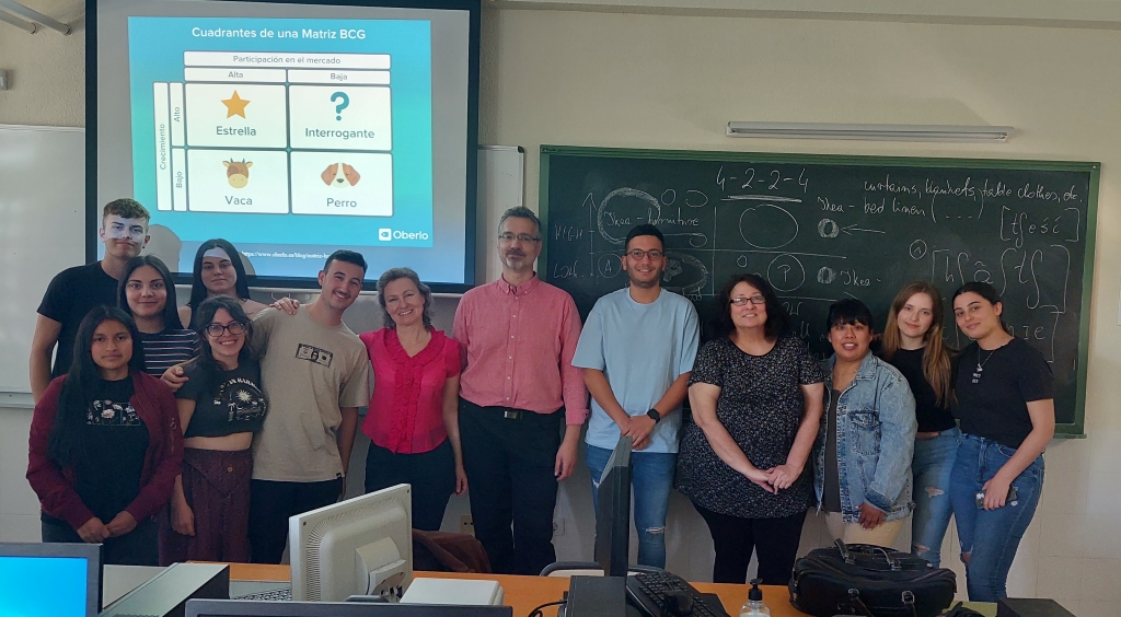 Los doctores ofrecieron a nuestros alumnos de Primero de Grado Superior de Administración y Finanzas, tutelados por Eva Menargues y a alumnos de Segundo de Bachillerato tutelados por Rosario Bertomeu, clases para sensibilizar a los alumnos sobre la terminología empresarial resaltando las similitudes y diferencias en la terminología comercial figurativa en diferentes idiomas/culturas (español, inglés, francés, polaco).