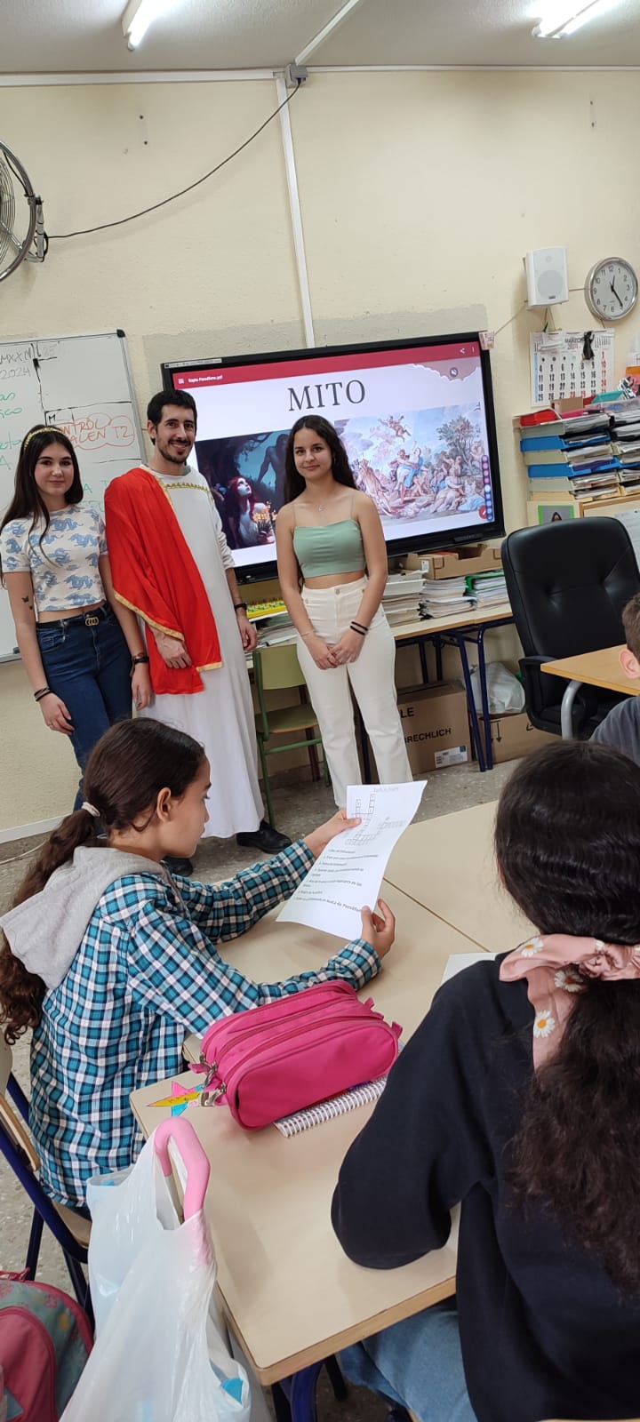 El jueves 21 de marzo las alumnas de Latín y Griego de 1º de Bachillerato hicieron una pequeña excursión al colegio vecino para realizar un taller de cuentacuentos con el alumnado de 5º y 6º de primaria. De estas formas las alumnas han podido conocer de primera mano el mundo de la docencia y los alumnos y alumnas de primaria han podido conocer algo más la mitología grecolatina y las enseñanzas y moralejas que podemos extraer de mitos grecolatinos.