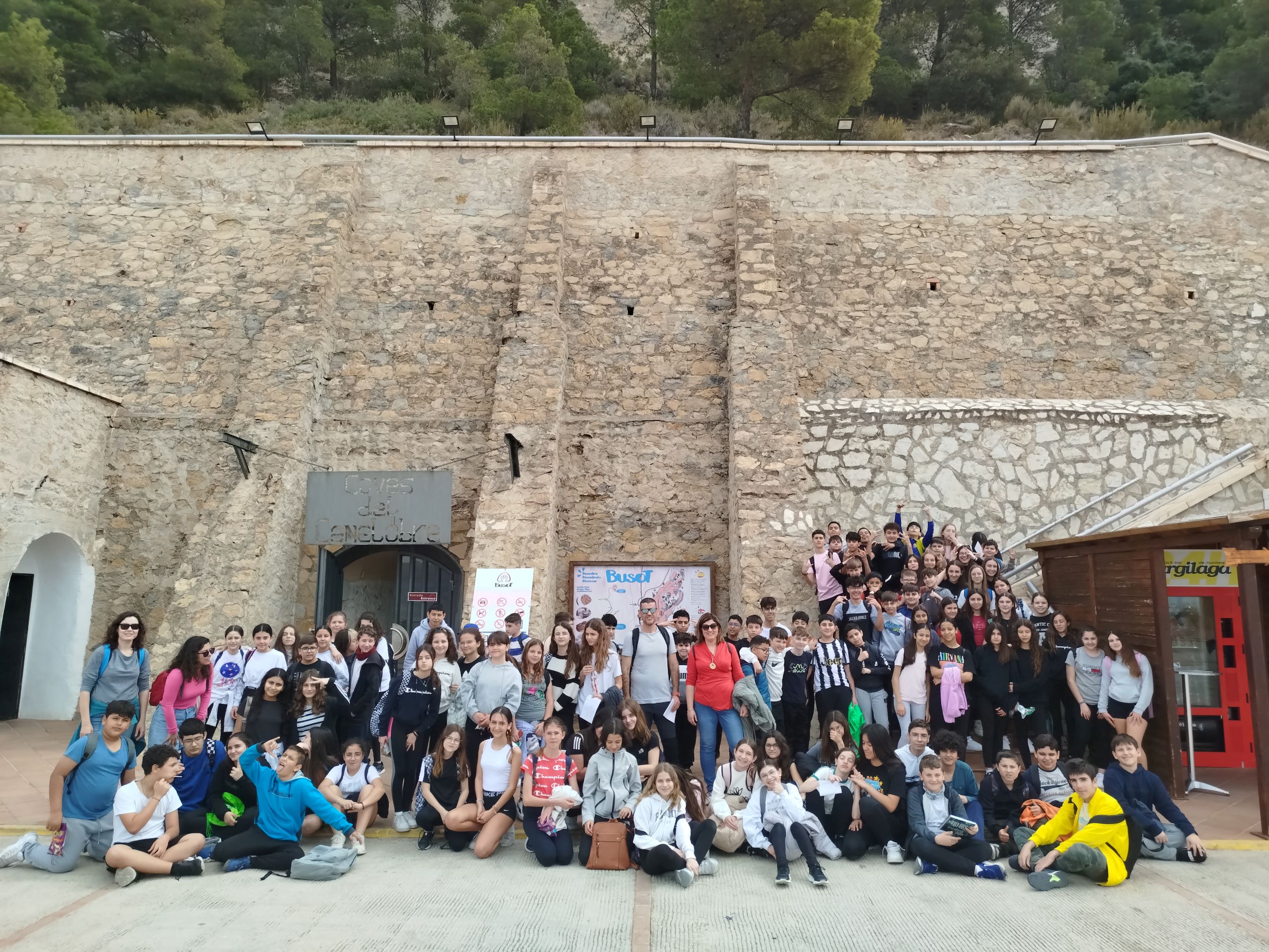 El alumnado de 1º ESO realizó una visita guiada a las Cuevas de Canelobre en Bussot, donde pudo observar las formaciones geológicas características del modelado kárstico, ampliando los contenidos teóricos trabajados en el bloque de Geología de la segunda evaluación. Después se realizó una pequeña ruta por el entorno para la recogida de muestras y posterior identificación de diversas especies autóctonas de plantas y algunas rocas, para en próximas sesiones en el laboratorio analizar las muestras.