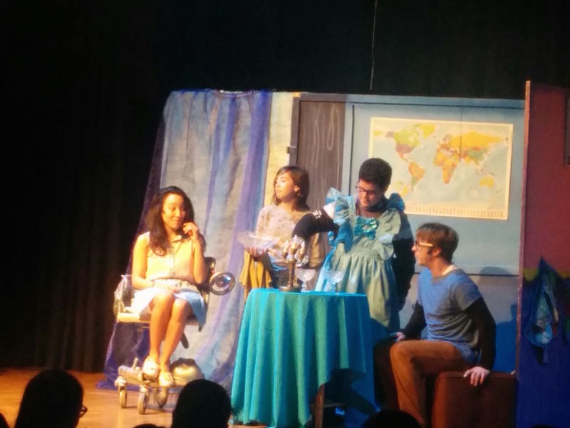La representación teatral, ya compleja en sí por realizarla chicos y chicas jóvenes, no profesionales, conllevaba la dificultad de ser íntegramente en idioma inglés. Para los asistentes no fue un problema, puesto que previamente a cada escena una voz en off, describía la escena y por otro la expresividad y buen hacer de nuestros actores y actrices, facilitaba captar lo que ocurría en el escenario para todos aquellos que desconocen el inglés. Además, contó con la interpretación de dos magnificas canciones en directo que aportaron una nota de originalidad y frescura a la representación.