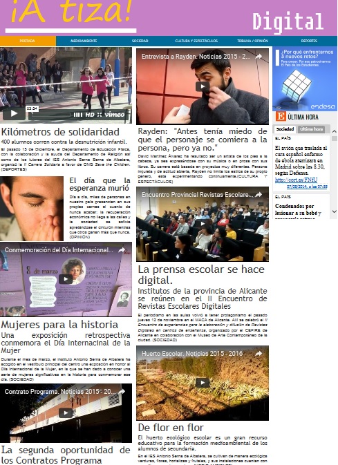 En esta ocasión, los chicos y chicas de TMI Prensa de 4º de ESO dirigidos por D. Ángel Ceballos Ortiz, han optado por una publicación digital, en la que se incluyen contenidos multimedia relacionados con el medio ambiente, la cultura, el deporte, la opinión o los temas de sociedad. Del mismo modo el profesor de lengua valenciana D. Ramón Guilabert Antón, ha coordinado tres grupos (2E, 4B y 4C) que han elaborado una edición cada uno de ellos de este certamen.
