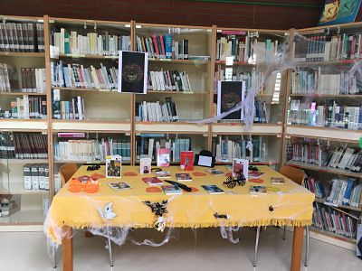 No, aquí no se celebra el Halloween. Es demasiado anglosajón. Aquí celebramos el Jalowin este año en la Biblioteca y con actividades en todas las clases: 1º y 2º ESO han estado ideando epitafios para las tumbas expuestas, junto con las telarañas y murciélagos correspondientes. 3º y 4º han escrito relatos de terror para una lectura común el miércoles 31, y los miembros del Dpto. de Lengua Castellana y Literatura experimentarán el día de autos una curiosa metamorfosis... ¡sorpresa! Además se ha confeccionado un video, cuyo enlace dejamos abajo, para deshacer algunos tópicos y poner al miedo en su sitio. Ni truco ni trato. ¡Bailaremos con La Oscuridad y nos reiremos de ella! Agradecemos la colaboración de todos los cursos que, con terrorífico entusiasmo, han participado en las actividades. No olvidéis visitar la Biblioteca... Será una experiencia... ¡aterradora! ¡Y no dejéis nunca de leer a Edgar Allan Poe!
